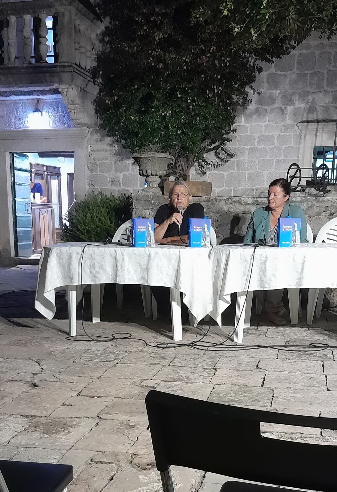 У башти Градског музеја “Мирко Комненовић” синоћ (25.09.2025. године) је промовисана књига “Загледана у стијену” ауторке Неде Гудељ – о животу игуманије манастира Дужи мати Теодоре, али и животу ауторке, њеном духовном рађању и сазријевању уз игуманију.